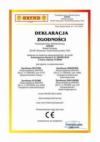 Dziękujemy za wybranie kotła grzewczego typu DEFRO DUO z szerokiej oferty wyrobów