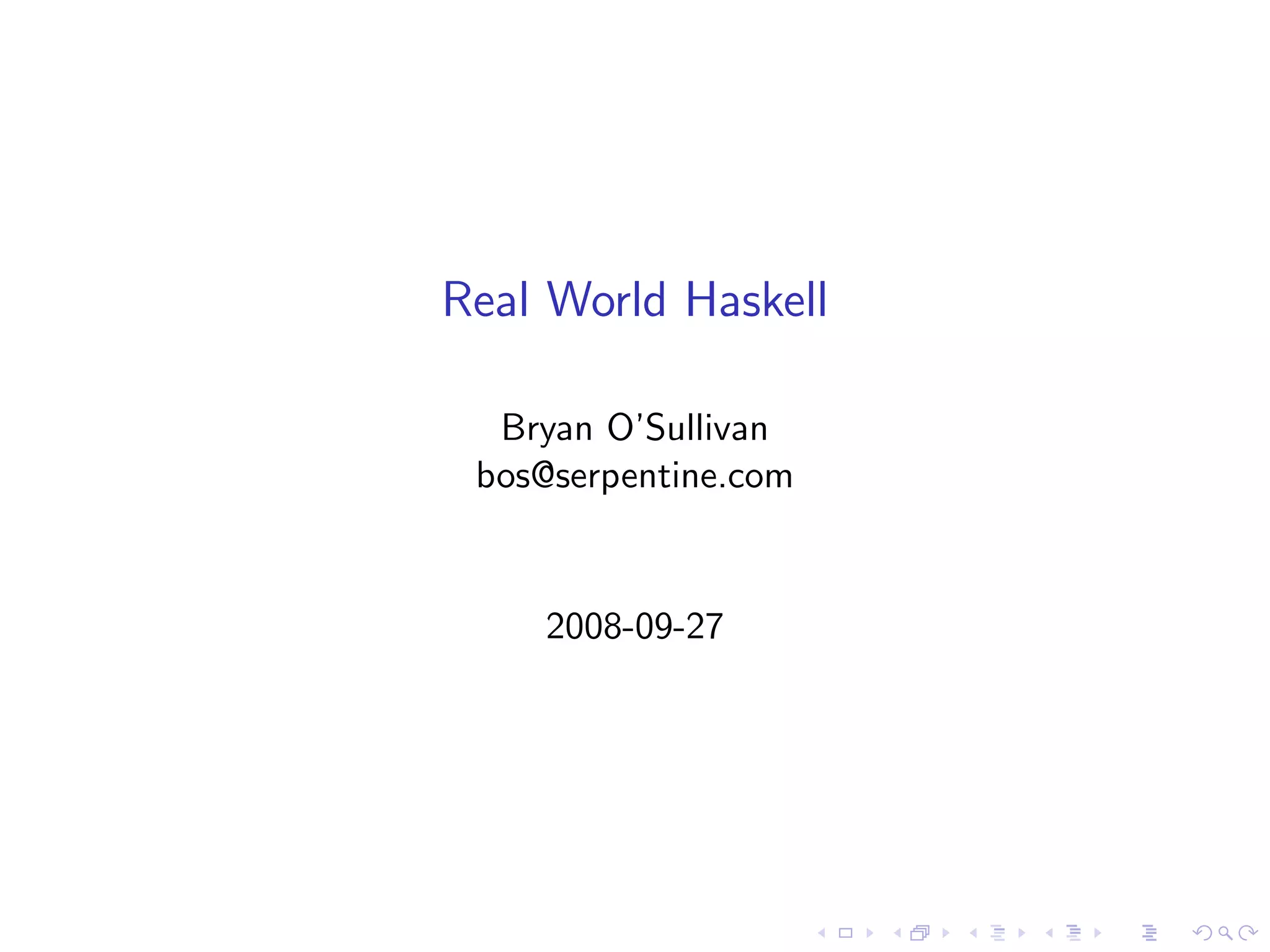 This document provides an introduction and overview to the Haskell programming language. It discusses Haskell's core concepts like pure functions, immutable data, static typing, and lazy evaluation. It also covers common Haskell tools and libraries, how to write simple Haskell programs, and how to compile and run Haskell code. The document uses examples and interactive sessions to demonstrate Haskell syntax and show how various language features work.