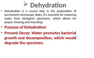 Dehydration, embedding, and sectioning with a microtome are crucial steps in preparing tissue samples for microscopic examination. Dehydration removes water from the tissue, followed by embedding in a medium like paraffin wax to provide support for sectioning. The microtome is then used to cut thin slices (sections) of the embedded tissue, which are subsequently mounted on slides and stained for viewing under a microscope.