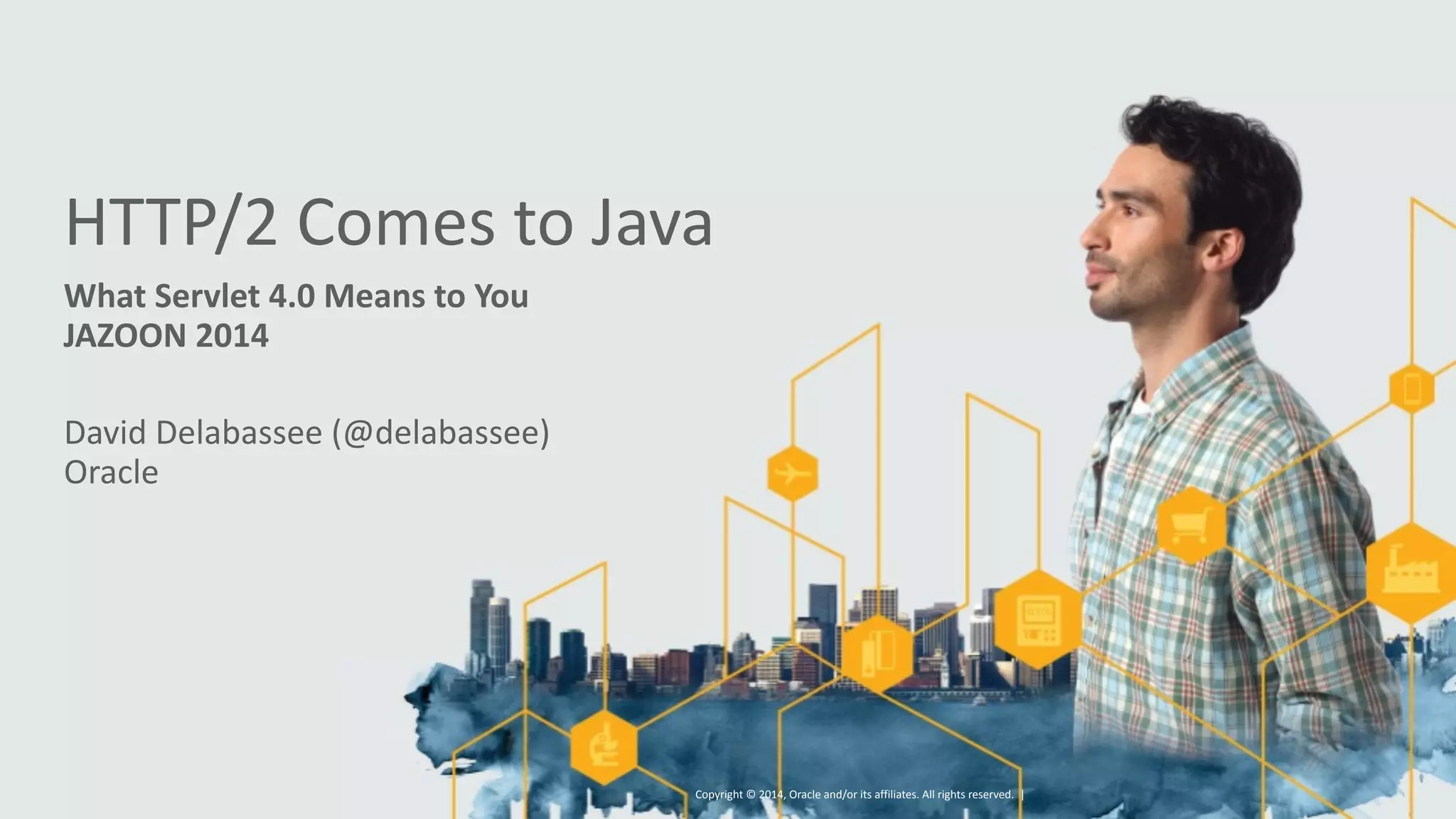 This document discusses the new features of HTTP/2 and how it will be supported in Java technologies. It provides an overview of HTTP/2, including its key features like request/response multiplexing and server push. It describes how Servlet 4.0 may expose these HTTP/2 features. It also discusses planned support for HTTP/2 in Java SE 9 and the current status. The overall agenda covers HTTP/2 capabilities, how Servlet could leverage them, Java SE 9 integration, and a summary.
