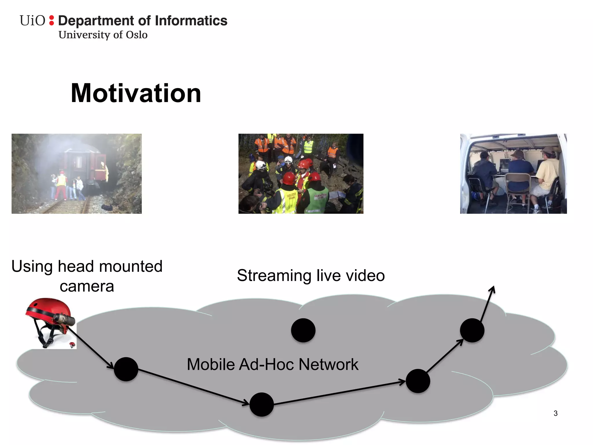 This document discusses delay tolerant streaming services for transmitting live video from mobile devices over unstable mobile ad-hoc networks. It motivates the need for such services when conventional network infrastructure is unavailable. The approach involves building an adaptive overlay network on top of the mobile ad-hoc network to enable delayed and disrupted video streaming. Several technical challenges are outlined and initial results are highlighted from experiments and simulations evaluating the feasibility of video streaming over mobile ad-hoc networks formed by mobile phones. Future work is discussed around developing a prototype system and exploring fundamental changes needed to support emerging applications and technologies.
