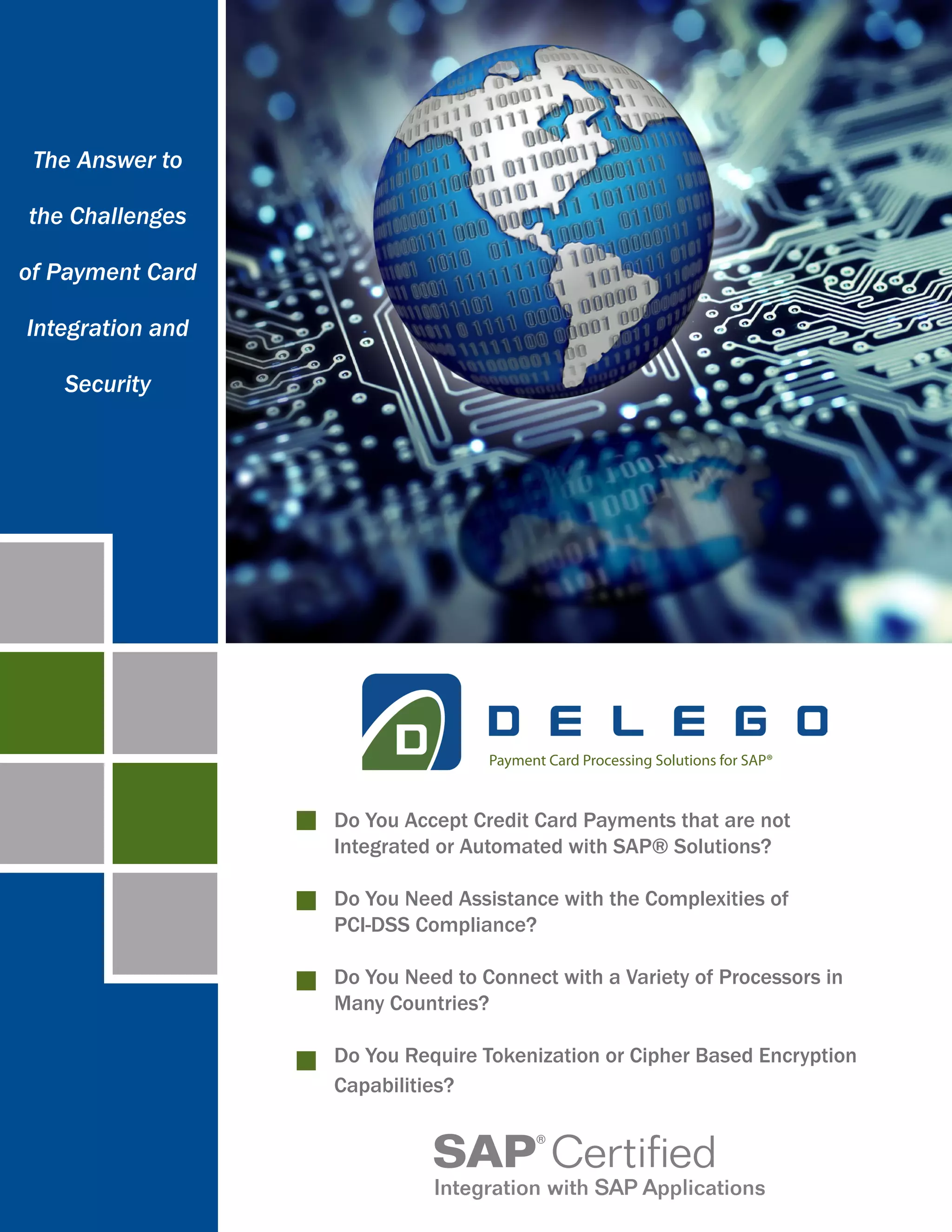 Delego Software provides payment card processing solutions for SAP that integrate credit card payments, assist with PCI compliance, and connect to various payment processors globally. Their solution streamlines order to cash workflows, supports over 100,000 transactions per day, offers secure online payment options, and removes the burden of handling payment data through secure integration. With over 100 customers worldwide and 35 payment processor certifications, Delego offers a proven payment solution for SAP users.