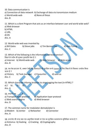 20. कंप्यूटर द्वारा इन्टरनेट पर भेजे जाने वाले सन्िेश को क्या कहते है ?