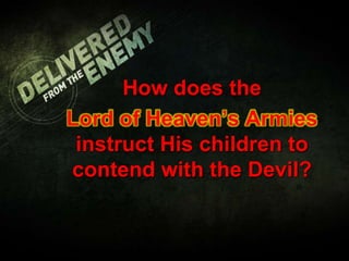 This document discusses spiritual warfare and the armor of God described in Ephesians 6. It explains that Christians wrestle not against flesh and blood but against spiritual forces of evil. The document outlines the belt of truth, breastplate of righteousness, gospel of peace, shield of faith, helmet of salvation, and sword of the Spirit as the armor provided by God to withstand attacks. It encourages meditating on relying on God rather than one's own abilities and walking in truth by stripping off anything that hinders spiritual battle.