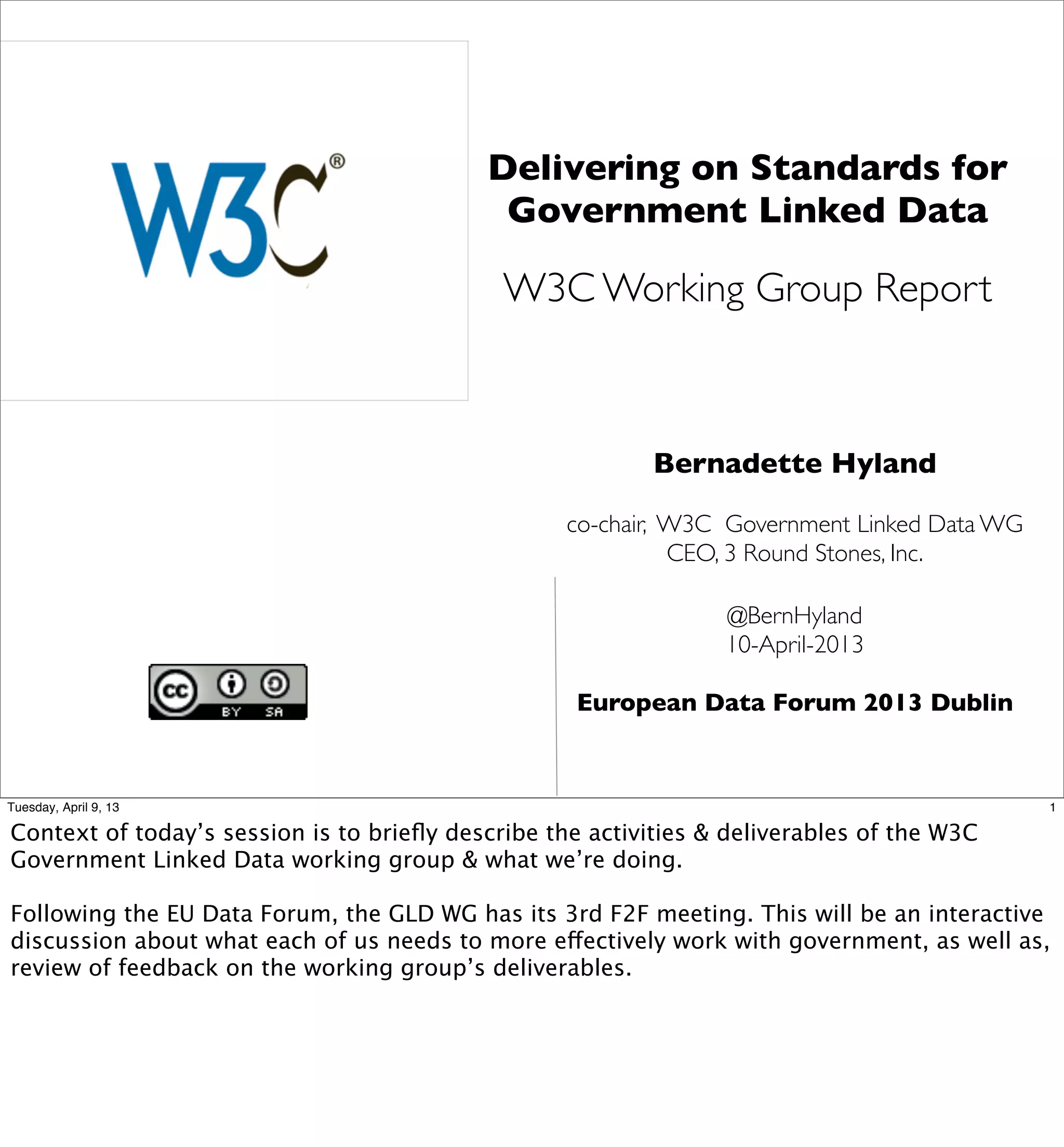 The W3C Government Linked Data Working Group aims to improve access to public government data by promoting the use of linked data standards and best practices. It highlights the challenges currently faced in publishing machine-readable data and advocates for a shift in mindset towards open data sharing. The group has been working on resources and guidelines to assist governments worldwide in transitioning to linked open data to enhance transparency, accessibility, and reusability of information.