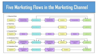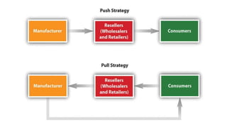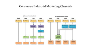 This document discusses marketing channels and channel management. It begins by defining key channel concepts like push and pull strategies, multichannel marketing, omnichannel marketing, and integrated marketing channels. It then covers channel functions, levels, and member functions. The rest of the document discusses channel design decisions, evaluating alternatives, managing channel members, and resolving conflicts.