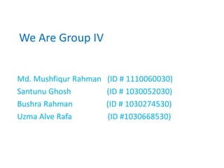 This document provides information about Group IV and Dell Inc. It discusses Dell's history, mission statement, future plans, SWOT analysis, products, competitors, international markets, planning/strategic factors, organizational design, delegation of authority, diversity/inclusion, and cultures/values. The key points are that Dell was founded by Michael Dell in 1984 and has become a large multinational technology company, with strengths in its supply chain and brand but weaknesses in potential product recalls. It has diversified its product line and expanded globally.