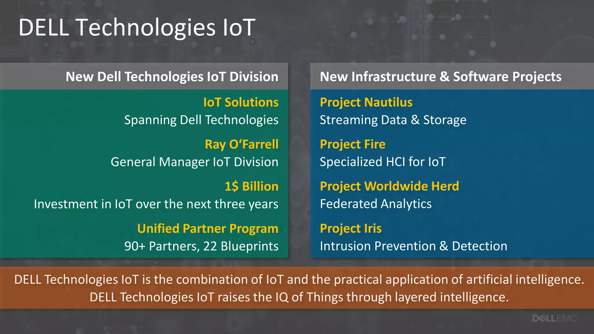 Dell Technologies outlines its significant investment in the Internet of Things (IoT) and the role of artificial intelligence in enhancing various industries. The document discusses diverse IoT applications across sectors such as manufacturing, healthcare, and smart cities, and highlights the company's partnerships and technological innovations. It emphasizes the critical drivers for IoT projects, including cost reduction and efficiency improvements, while detailing various communication technologies and their implications for future developments.