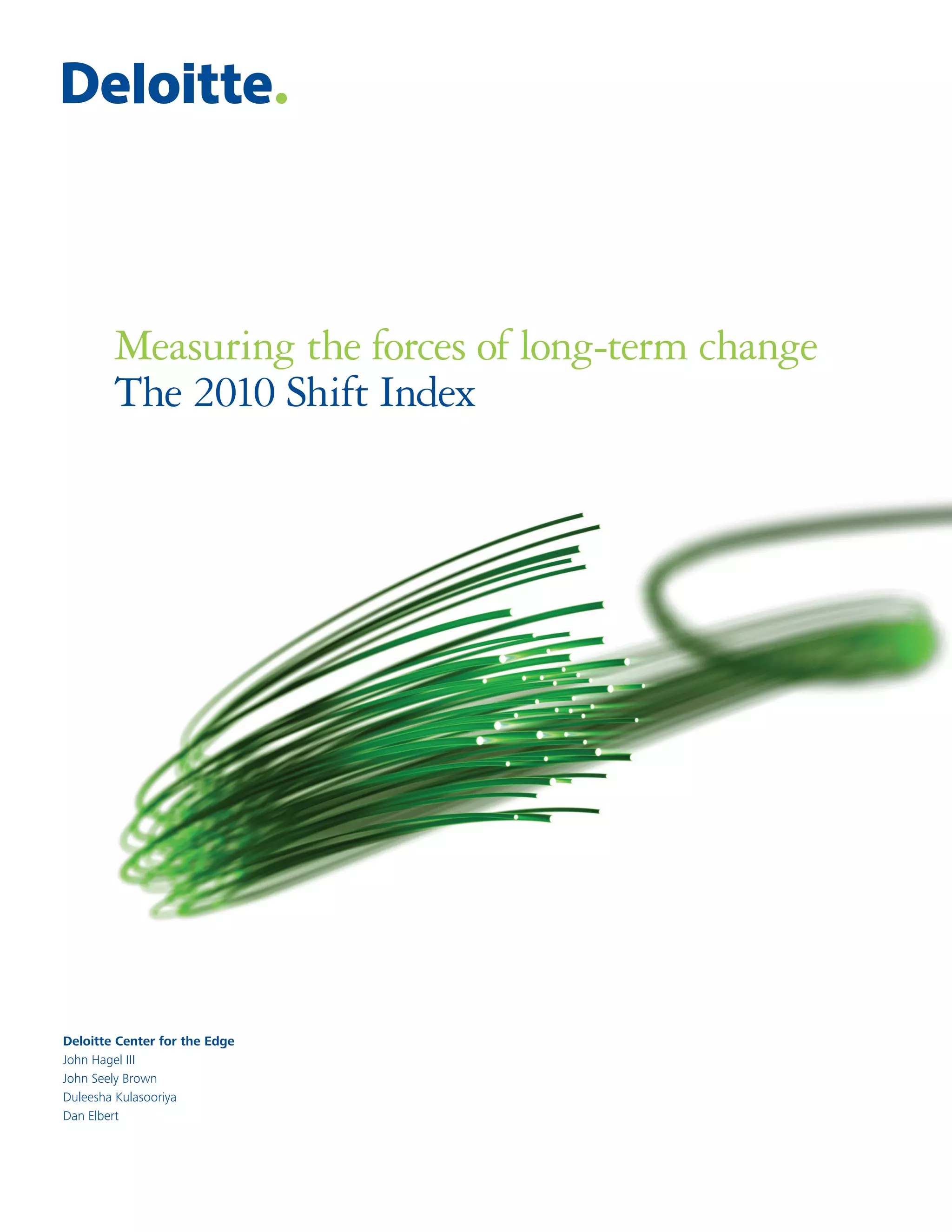 This document provides an overview and update of the Deloitte Center for the Edge's Shift Index, which measures long-term trends in business performance and the forces driving change. Key findings include: