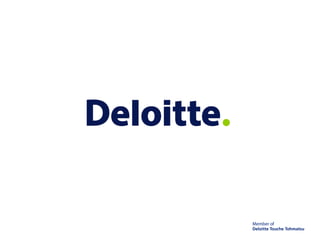The document provides an overview of Deloitte Consulting LLP, including its services, marketplace positioning, firm overview, and a sample consultant's day. It discusses the firm's strategy and operations, human capital, enterprise applications, technology integration, and outsourcing services. It also describes corporate finance services and interview tips for case study interviews.