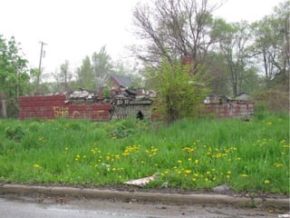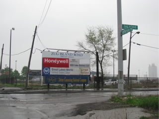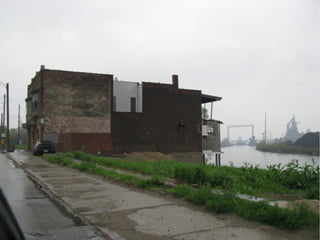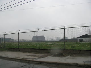 The document discusses the demographics and industrial presence in the 48209 zip code, particularly focusing on Delray. It highlights the integration of industrial sites within residential areas and the impact this has on the community. The text appears disjointed, making it challenging to extract coherent detailed insights.