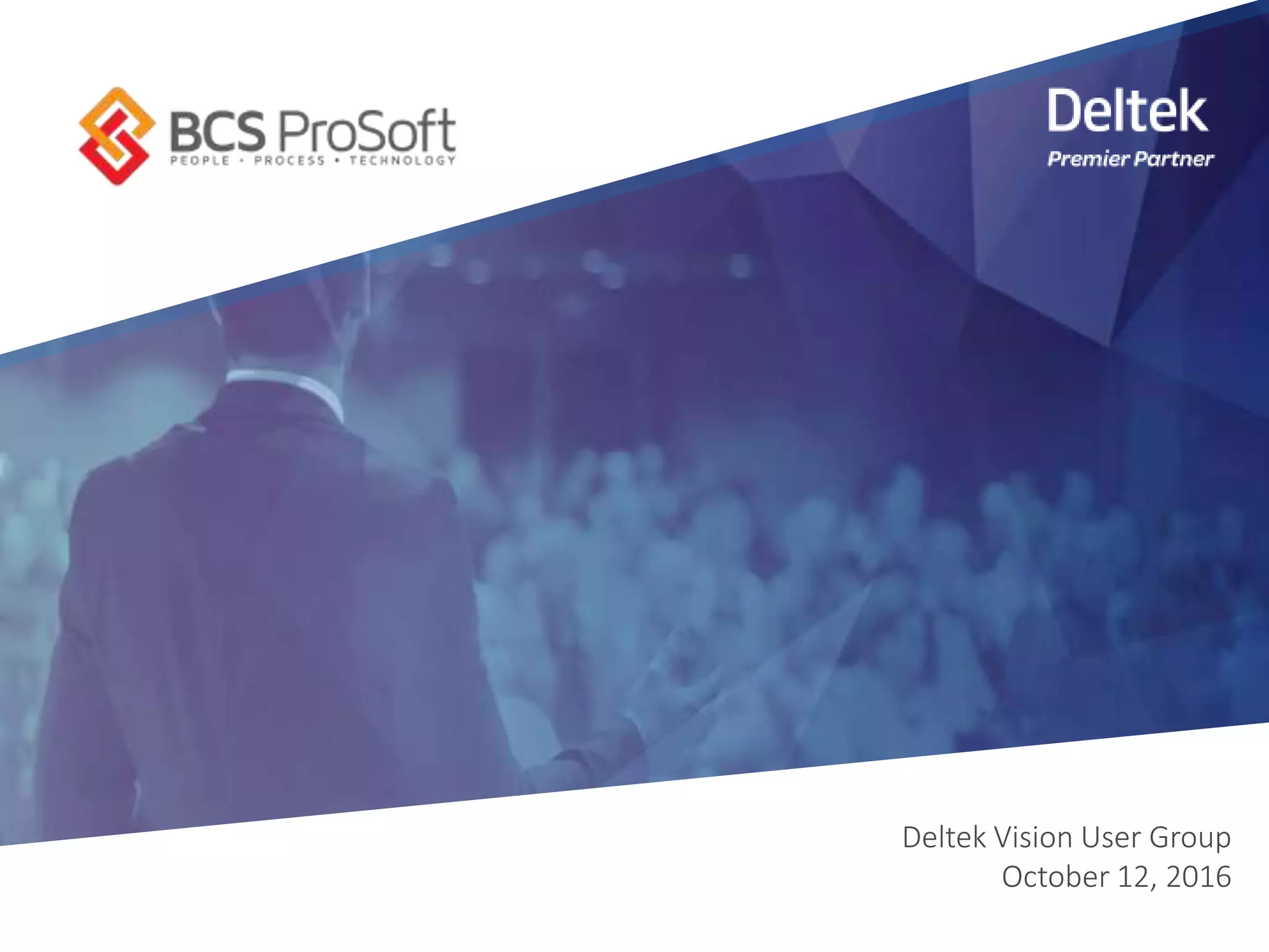 The document outlines a user group meeting for Deltek Vision, providing an agenda that includes introductions, year-end review procedures, new features in version 7.6, and tips for effective use of the software. It discusses the importance of year-end processing and describes the necessary steps for payroll users, including backups and adjustments for a new fiscal year. Additionally, it highlights enhancements in the new version, such as approval workflows for expense reports and improved document management capabilities.