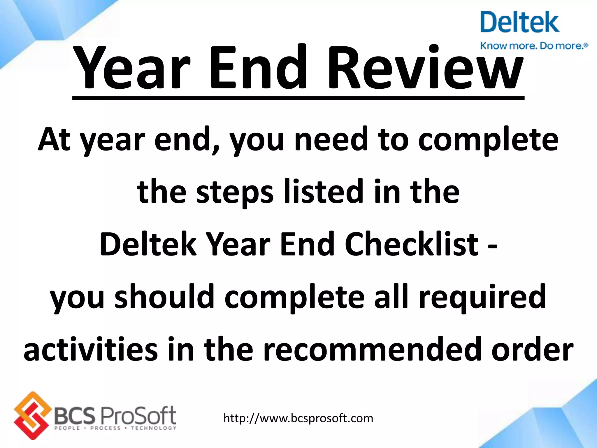 The document outlines year-end procedures for Deltek Vision users, including necessary steps such as making database backups, processing payroll adjustments, and generating W-2 and 1099 forms for 2015. It also highlights new features and enhancements in version 7.5, such as multi-company employee options, absence requests, and improvements to the asset management module. Additional tips and tricks for efficient usage of the software are also provided.