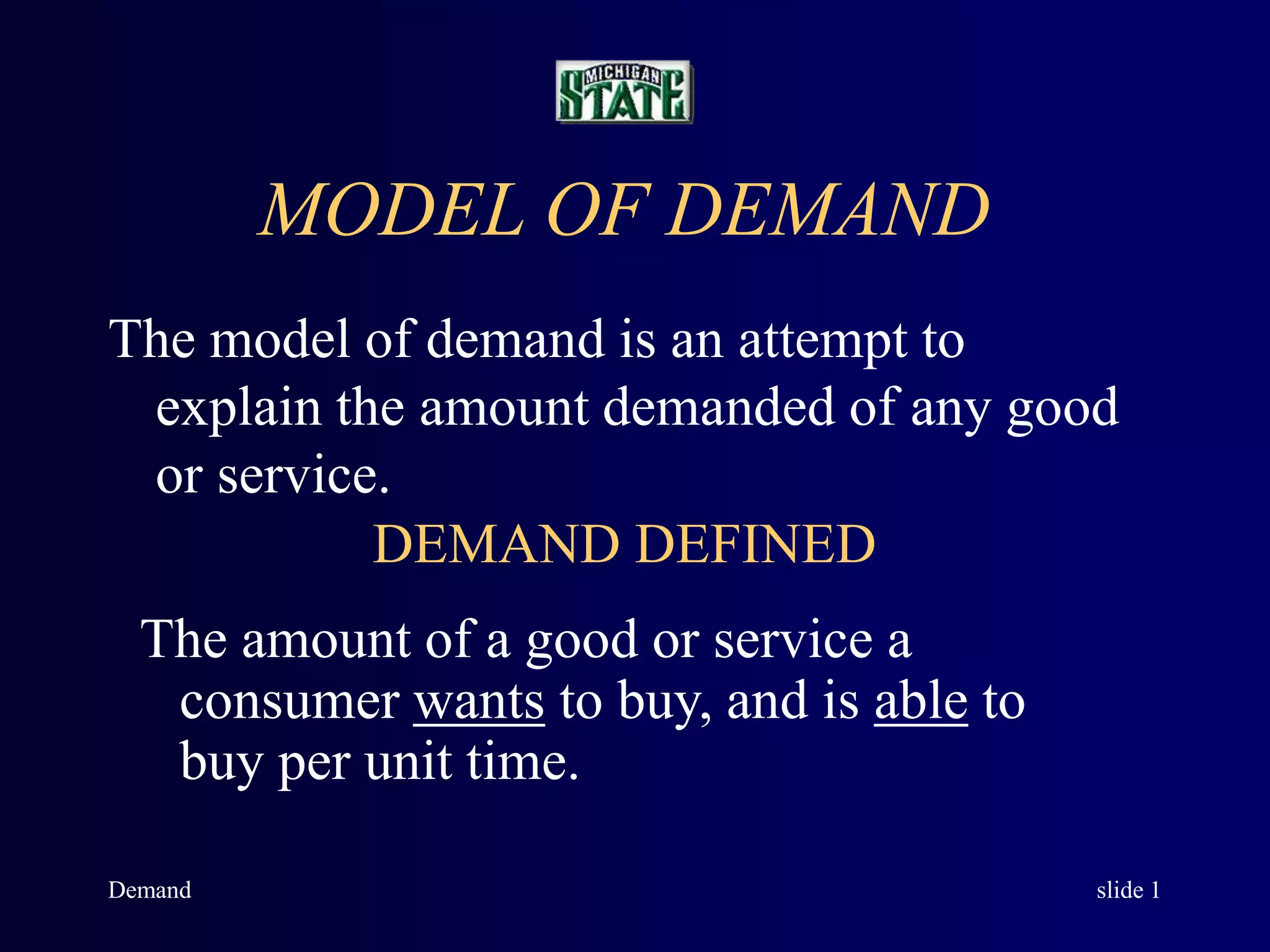 - Demand is the quantity of a good consumers want to buy at a given price, holding other factors constant.