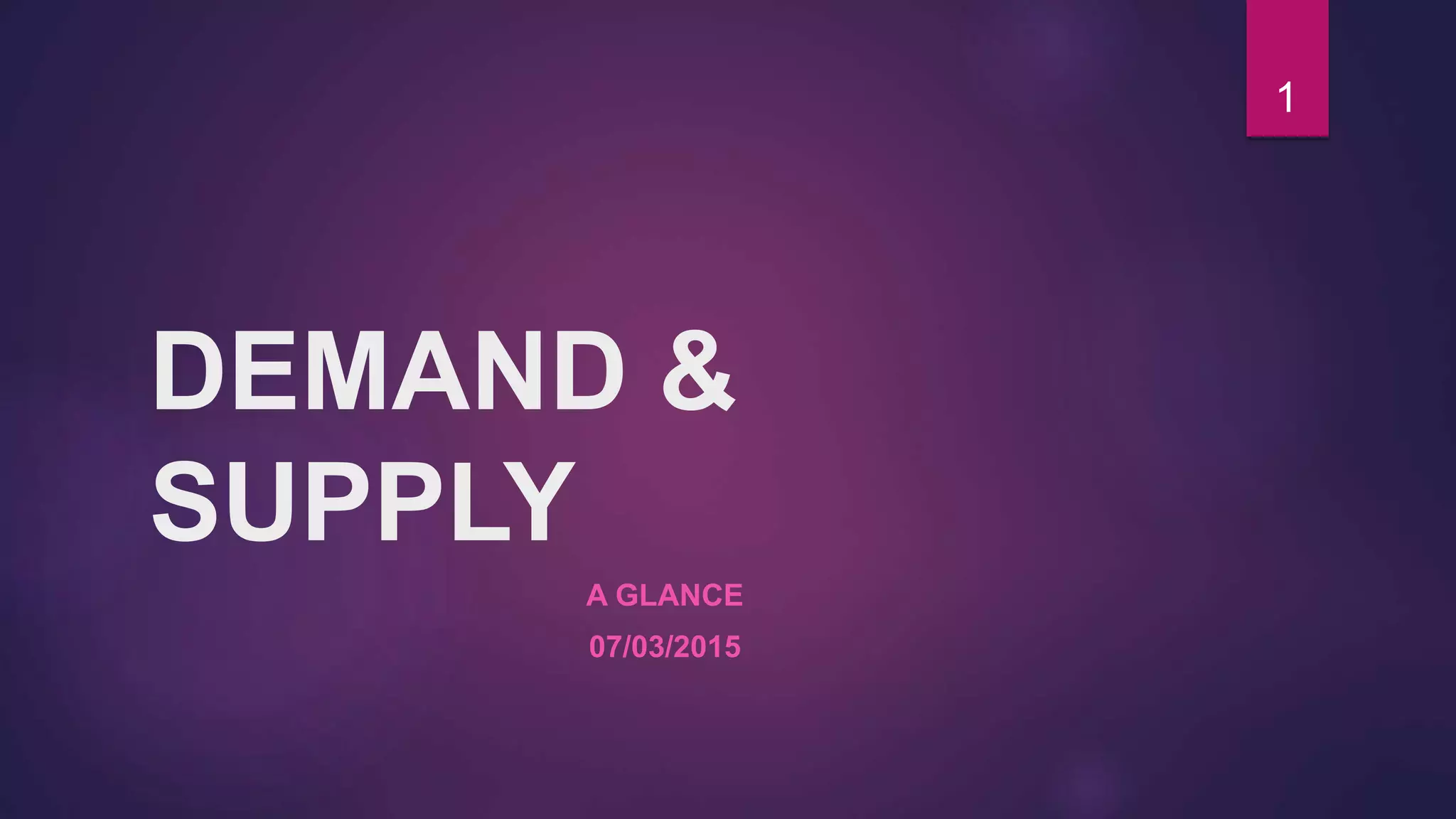 This document provides an overview of demand, supply, and market equilibrium. It discusses key concepts such as: