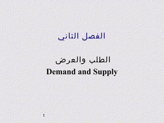 يتناول الفصل الثاني من الوثيقة مفهوم الطلب والعرض في السوق، حيث يُعرف الطلب بأنه الكميات التي يرغب المشترون في شرائها بأسعار معينة في وقت محدد، ويظهر تأثير السعر على الكمية المطلوبة عبر قانون الطلب. كما يوضح العرض كميات السلع التي يعتزم المنتجون بيعها، مع ارتباط السعر والكمية المعروضة بعلاقة طردية، ويشير الى كيفية تحديد توازن السوق عبر تقاطع منحنيي الطلب والعرض. يتناول الفصل أيضًا تأثيرات متنوعة مثل دخل المستهلك وأذواقه وأسعار السلع البديلة والمكملة، مما يسهم في فهم أعمق لآليات السوق.