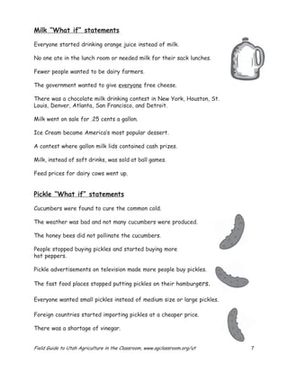 The document explains an activity to help students understand the relationship between supply, demand, and price of products. It involves dividing students into groups and giving each group statements about hypothetical changes to the price or demand of milk, pickles, or eggs. The groups must discuss whether each change would increase or decrease the supply, demand, or price of the product using response cards. Doing this activity allows the teacher to assess each student's comprehension of these economic concepts and provide individual help as needed.