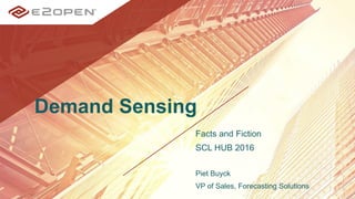 Demand sensing is a technique that uses advanced pattern recognition and machine learning algorithms to monitor demand signals and predict customer orders. It provides more accurate forecasts than traditional demand planning by reconciling all demand data from different sources. Demand sensing cuts forecast error by over 40% on average and reduces safety stock levels and inventory, while improving order fill rates and service levels. It debunks myths that it is a "black box" or will disrupt planning processes. Customers report benefits like reducing inventory by 35% while improving service.