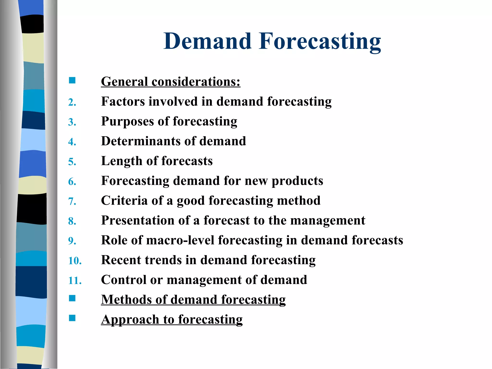1. The document discusses various factors, methods, and considerations for accurate demand forecasting.