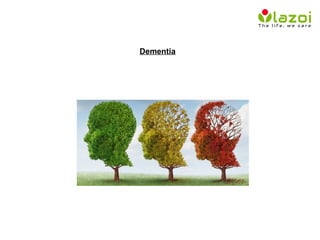 Dementia is a broad term describing symptoms that affect memory and thinking abilities, hindering daily activities. It damages nerve cells in the brain. Dementia can be caused by conditions like Alzheimer's disease or head injuries, and symptoms include memory loss, difficulty communicating, and behavioral changes. Doctors evaluate patients' thinking abilities, neurological functions, medical histories, and more to diagnose dementia and rule out other potential causes.