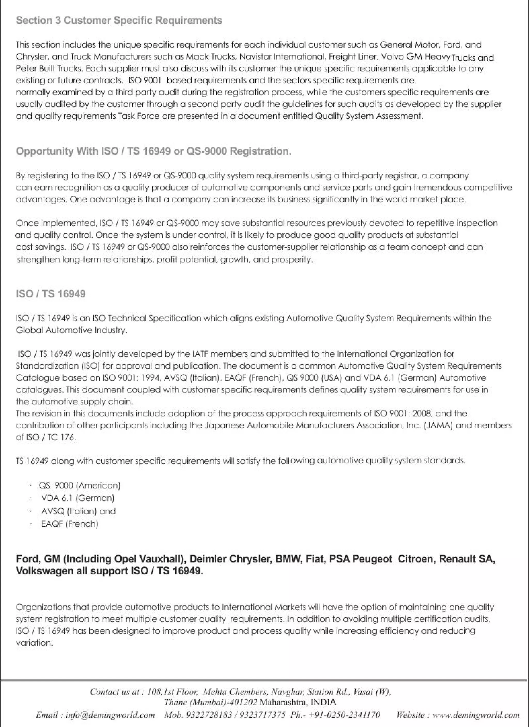 deming certification Insert 16949-2009
