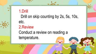 This document provides guidance on interpreting line graphs. It begins with an overview of line graphs, noting they have a title, scale, labels, points, and line. It then discusses how to interpret data presented in line graphs by comparing the data in terms of size and amount. Several examples of line graphs are presented along with questions to help students practice interpreting the data shown. The document emphasizes that line graphs are useful for tracking changes over time.