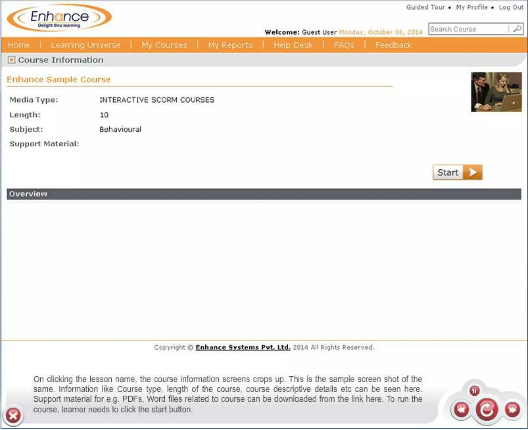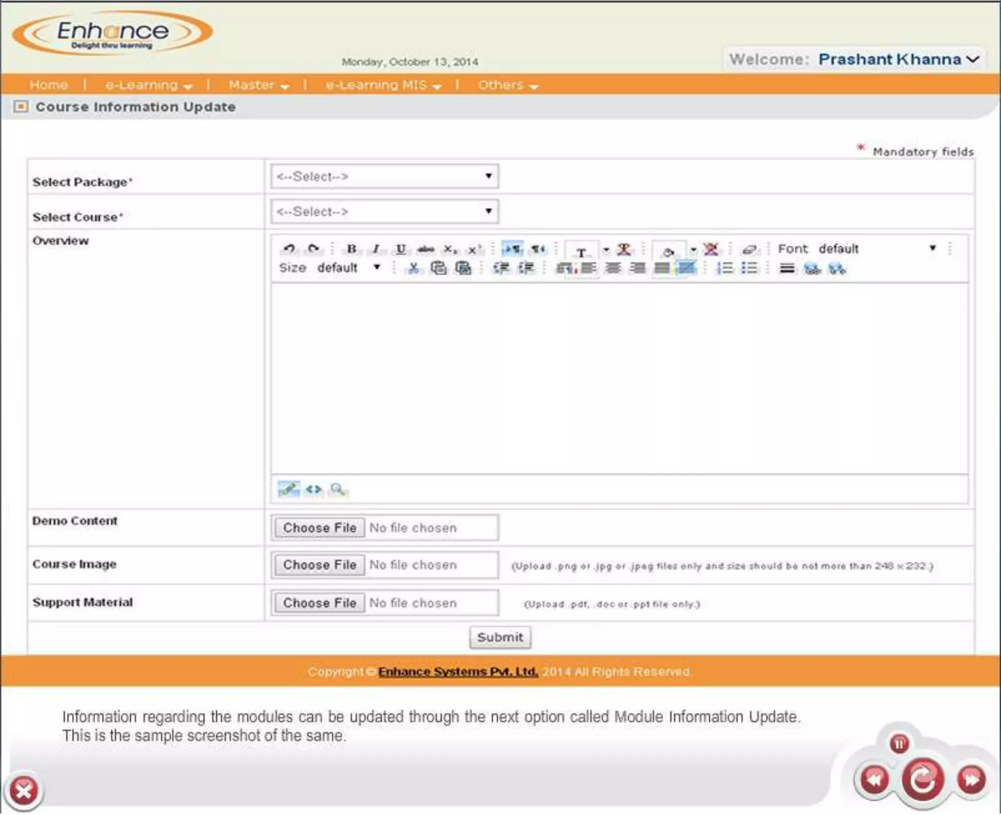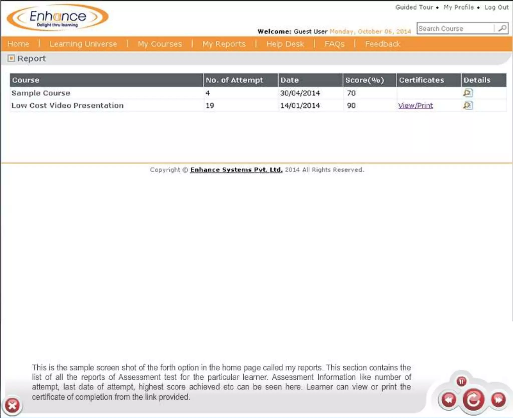 Enhance offers a low-cost learning management system (LMS) with demos available at their website. Interested parties can obtain more information about e-learning solutions or contact them via email. The document provides links to their LMS demos and contact details.