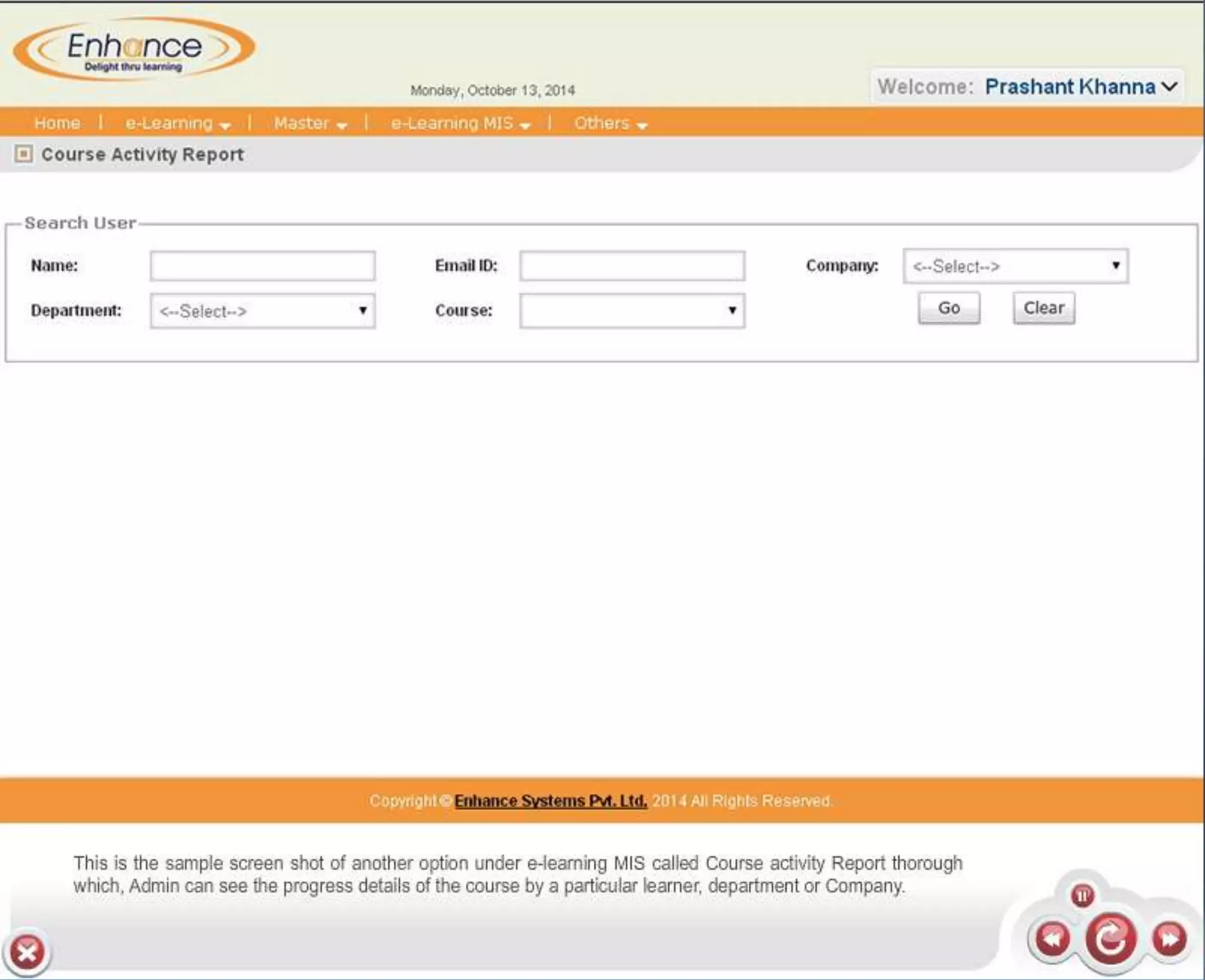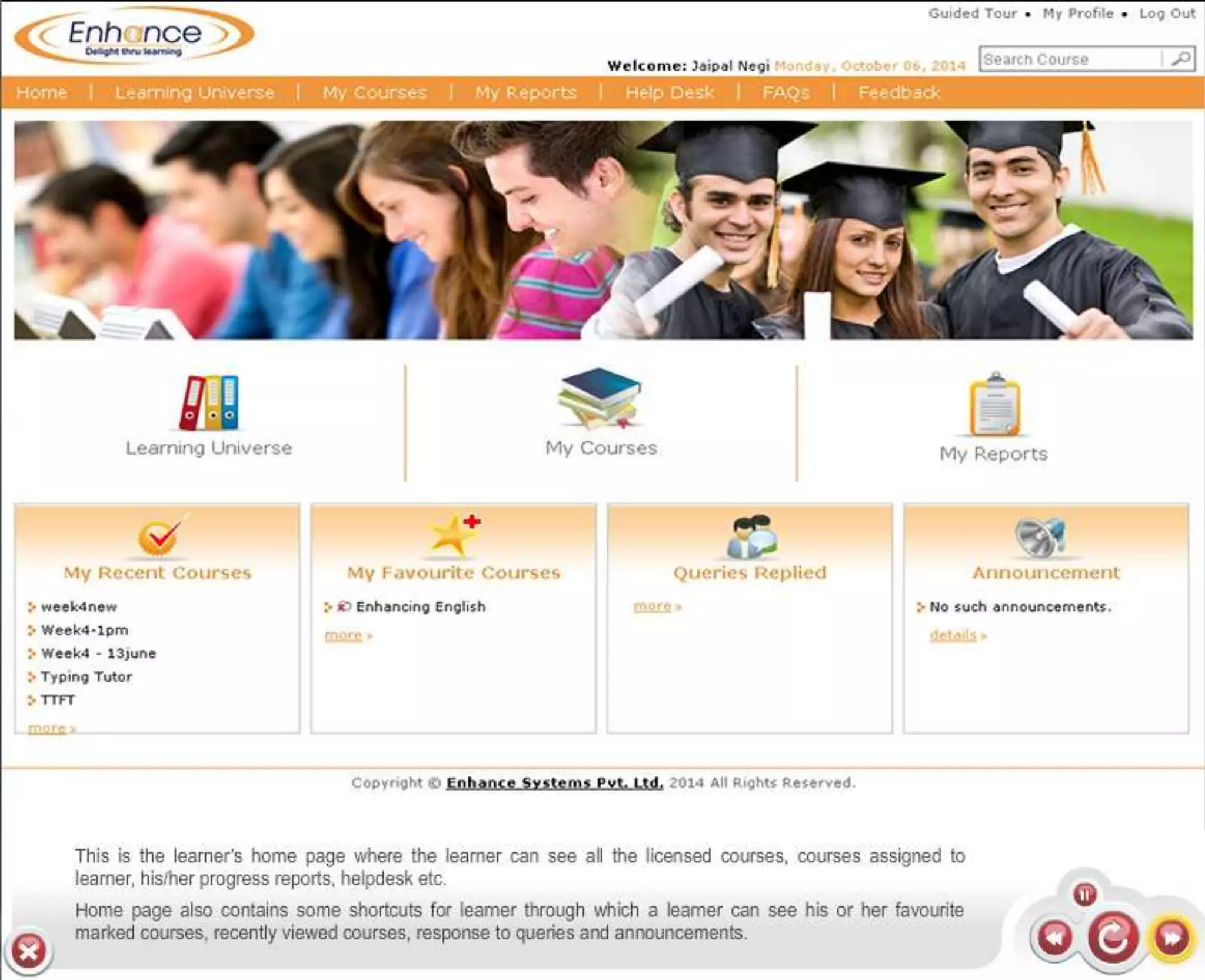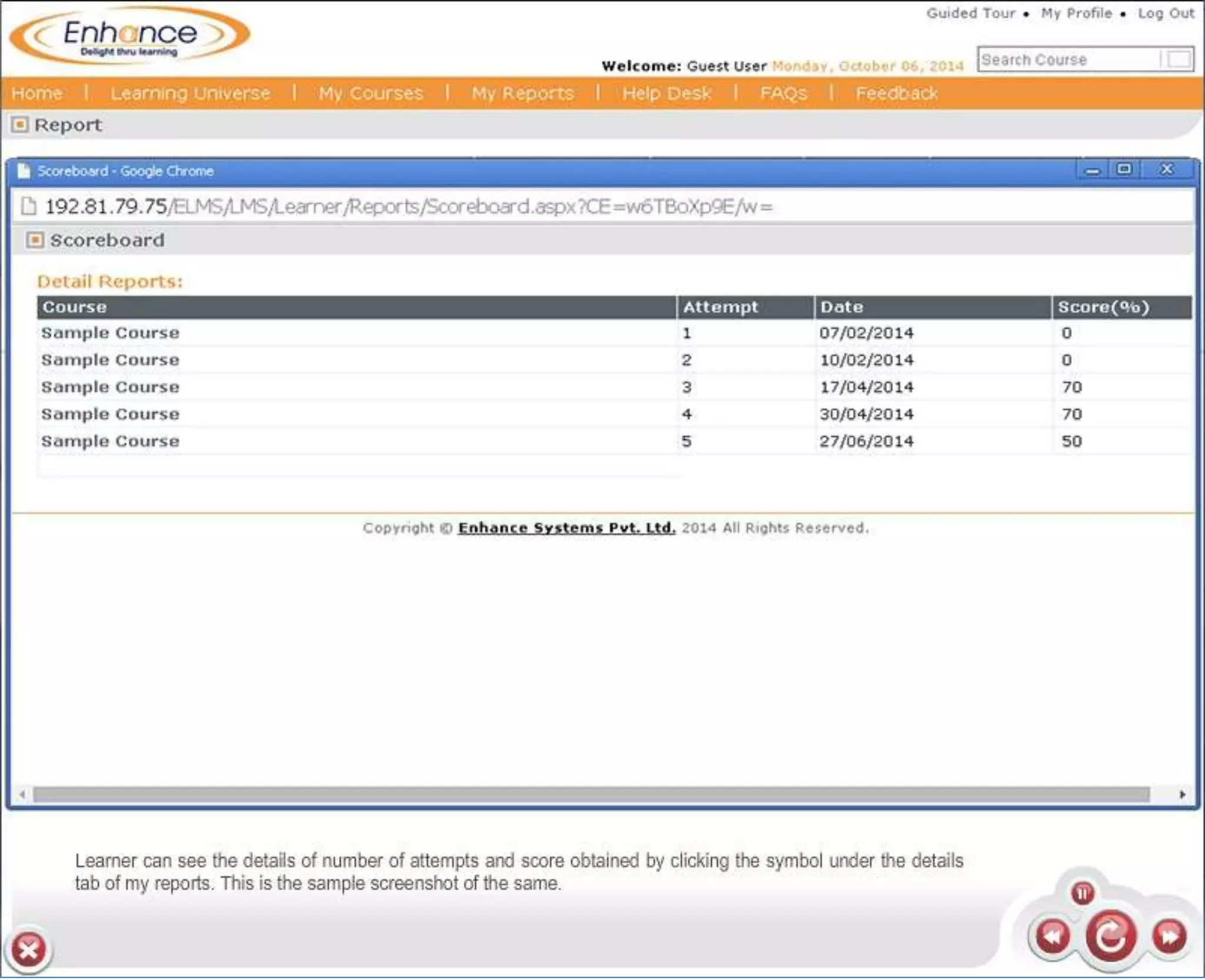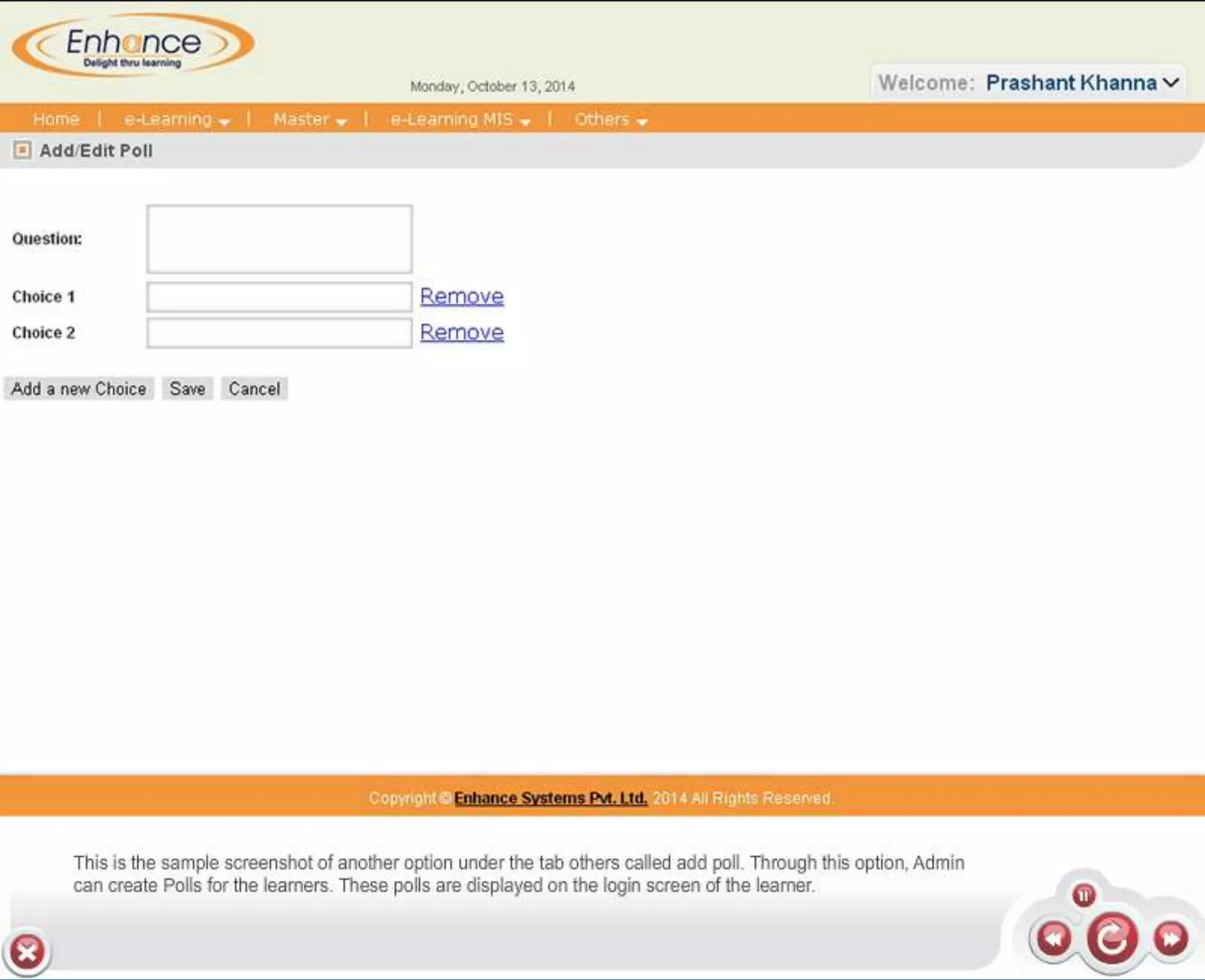 Enhance offers a low-cost learning management system (LMS) with demos available at their website. Interested parties can obtain more information about e-learning solutions or contact them via email. The document provides links to their LMS demos and contact details.