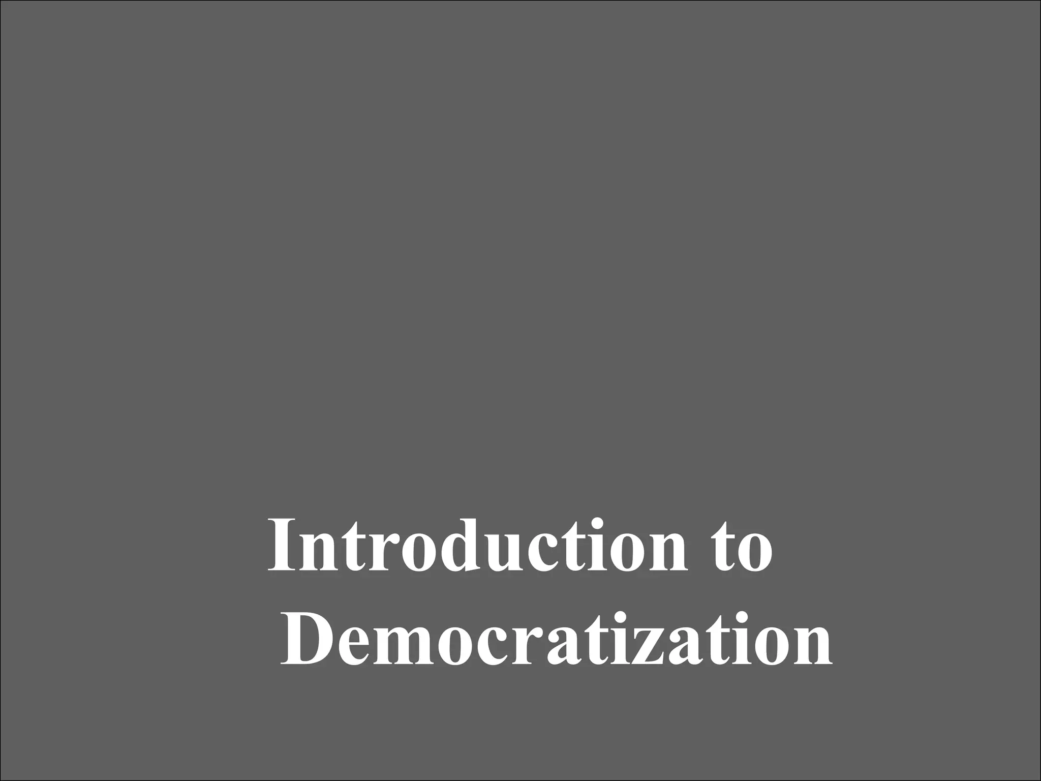 The document introduces the concepts of democratization, defining it as the transition from an authoritarian to a democratic political system. It discusses the three stages of this process: transition, liberalization, and consolidation. Democratization involves removing the old regime, creating democratic institutions and procedures, and achieving acceptance of these changes. Successful democratization may not always lead to democratic consolidation, and there is a risk of returning to non-democratic rule or a hybrid system. Certain pre-conditions like wealth, education, civil society, and a homogeneous population can enable successful democratization. Transitions can occur through elite-controlled reform, negotiated changes, or popular uprisings that collapse authoritarianism.