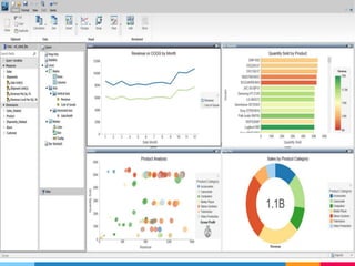 This document discusses democratizing analytics by providing self-service business intelligence tools for all employees. It argues that data is now everywhere and insights should be available to everyone, not just data scientists and analysts. The presented solution aims to give self-service analytics and reporting abilities to all user types from employees to customers and partners at scale.