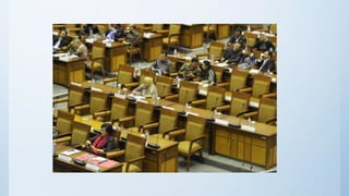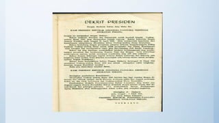 Dokumen ini membahas sejarah, prinsip, dan perkembangan demokrasi di Indonesia serta realitasnya saat ini. Demokrasi di Indonesia telah mengalami berbagai fase, termasuk demokrasi liberal, terpimpin, dan pancasila, dengan tantangan seperti penyelewengan dan rendahnya partisipasi rakyat. Kesimpulannya, meskipun demokrasi pancasila belum sepenuhnya terwujud, ada harapan untuk memperbaikinya melalui partisipasi aktif dari rakyat dan pemerintahan yang bersih.