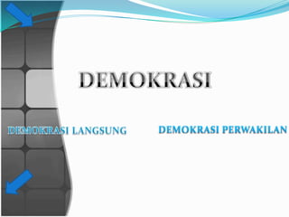 Dokumen ini membahas pengertian dan perkembangan demokrasi di Indonesia dari berbagai periode, dimulai dari demokrasi terpimpin hingga demokrasi reformasi. Demokrasi dinyatakan sebagai bentuk pemerintahan yang kekuasaan pemerintahannya berasal dari rakyat dan mencakup prinsip-prinsip seperti pemilihan yang bebas dan jujur. Kesimpulan menekankan bahwa demokrasi adalah paradoks yang memerlukan keseimbangan antara kebebasan dan keteraturan.