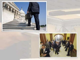 Lobbyistene arbeider meri det skjulte.Lobby betyr inngangshall på engelsk.Lobbyvirksomhet betyr at man arbeider systematisk for å påvirke politikere og andre beslutningstakere når de skal ta beslutninger.De prøver å legge fram saklig og objektiv informasjon.Næringsliver bruker ofte lobbyister for å fremme sine saker.Det finnes egne firmaer med lobbyister.
