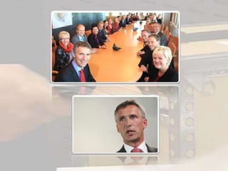 RegjeringsskifteEn regjering mågå av når den ikke har nok støtte i Stortinget.Statsministeren gir beskjed til Kongen og Stortinget om at regjeringen vil gå av.Regjeringen legger fram sin avskjedssøknad til Kongen.Kongen gir den nye statsministerkandidaten i oppdrag om å finne nok støtte i Stortinget til å danne en ny regjering.Når den nye regjeringen er klar, så blir Kongen orientert av den nye statsministeren om hvem som skal være med i nyregjeringen.I Statsråd på Slottet går den gamle regjeringen av og den nye mønstrer på.