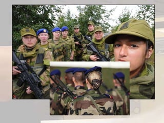 Soldatene får grunnutdanningunder førstegangstjenesten.De blir en del av den stående , faste styrken i fredstid.Etter førstegangstjenesten må mennene være forberedt å gå i krig hvis det blir uroligheter.De kan også bli innkalt til repøvelser.