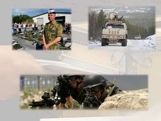 I fredstid harNorge 35000 menn og kvinner under våpen.9000 ansatte har også sin jobb i forsvaret.Hvis det blir krig, så kan Norge stille opp med 270 000 mann med våpen.