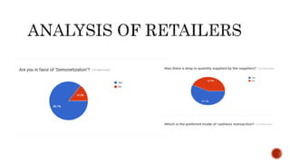 Demonetization involves stripping a currency unit of its status as legal tender. The document discusses the reasons for and effects of India's 2016 demonetization, which aimed to eradicate counterfeit currency, fight tax evasion, and promote a cashless economy. The short-term effects included liquidity stress and economic chaos. However, it increased cashless transactions by 400-1000% and led to 86% of cash deposits in banks, increasing liquidity. This higher liquidity enabled banks to lower lending interest rates and incentivize more investment. Both monetary and fiscal policy tools could be used to further stimulate the economy in light of reduced money supply and consumption.