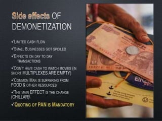- In the long run, as customers increasingly adopt digital payments, retailers expect sales and footfalls to return to normal levels. Demonetization is aimed at curbing black money, corruption, and use of illicit funds to sponsor terrorism.