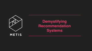 This document discusses recommendation systems and how to develop them. It begins by introducing the speaker and an overview of the topics to be covered. It then explains what recommendation systems are and different types including search, content-based, and collaborative filtering. It discusses drawbacks like cold start problems and sparsity and ways to address them. The document concludes with tips for refining recommendation models like normalization, capturing trends, and temporal factors.