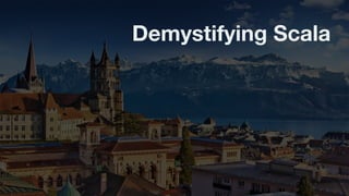 The document is a presentation by Kelley Robinson on demystifying Scala. Some key points covered include: