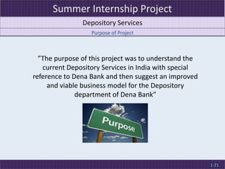 1) The document is a summer internship project report on depository services at Dena Bank.