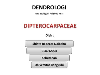 Dokumen ini menjelaskan tentang berbagai marga dan spesies pohon dalam suku Dipterocarpaceae yang penting di Indonesia, termasuk karakteristik kunci seperti bentuk buah, jumlah kromosom, dan sifat daun. Setiap marga memiliki ciri khas yang memberikan informasi tentang klasifikasi dan identifikasi spesies. Selain itu, terdapat kunci untuk spesies yang membantu dalam pemahaman lebih lanjut tentang morfologi dan ekologi masing-masing marga.