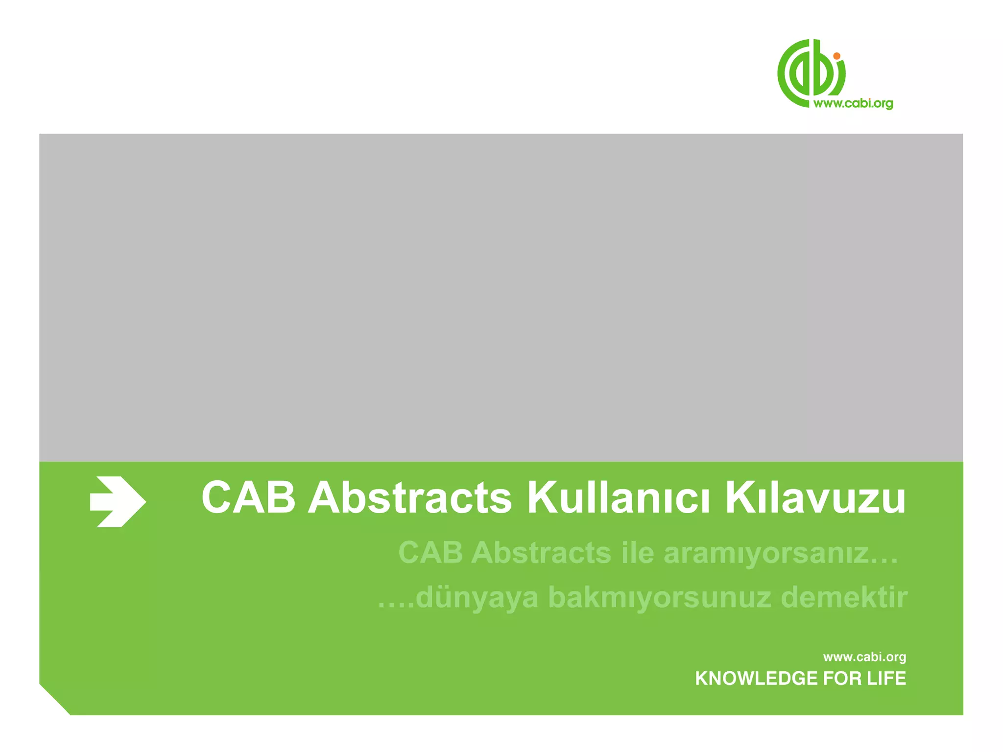 CAB Abstracts KullanıcıKılavuzu CAB Abstracts ile aramıyorsanız… ….dünyaya bakmıyorsunuz demektir