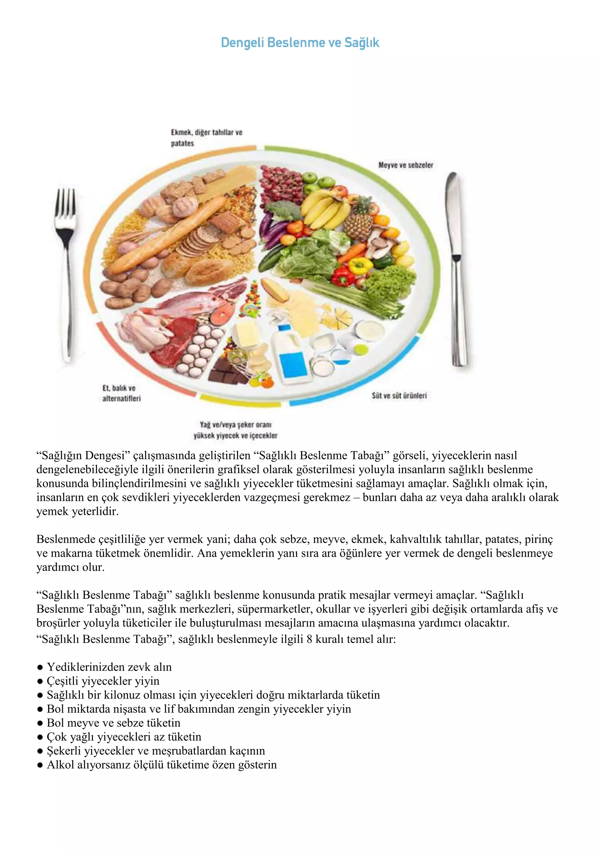 “Sağlıklı Beslenme Tabağı” sağlıklı beslenme konusunda pratik mesajlar vermeyi amaçlar. “Sağlıklı