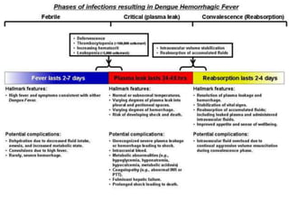 Dengue fever, also known as breakbone fever, is a mosquito-borne disease caused by the dengue virus, primarily transmitted by the Aedes aegypti mosquito. It presents in three phases: febrile, critical, and recovery, with symptoms including high fever, headache, and muscle pain, while severe cases can lead to complications such as dengue hemorrhagic fever and dengue shock syndrome. Management includes fluid resuscitation, supportive care, and monitoring for warning signs to prevent severe outcomes.