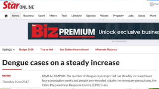 The document provides a detailed overview of dengue fever, including its definition, pathophysiology, clinical manifestations, diagnosis, and management strategies. It outlines the various stages of the disease, transmission methods, and the importance of nursing interventions for patient care. Additionally, it emphasizes preventive measures and outlines complications associated with dengue hemorrhagic fever and shock syndrome.
