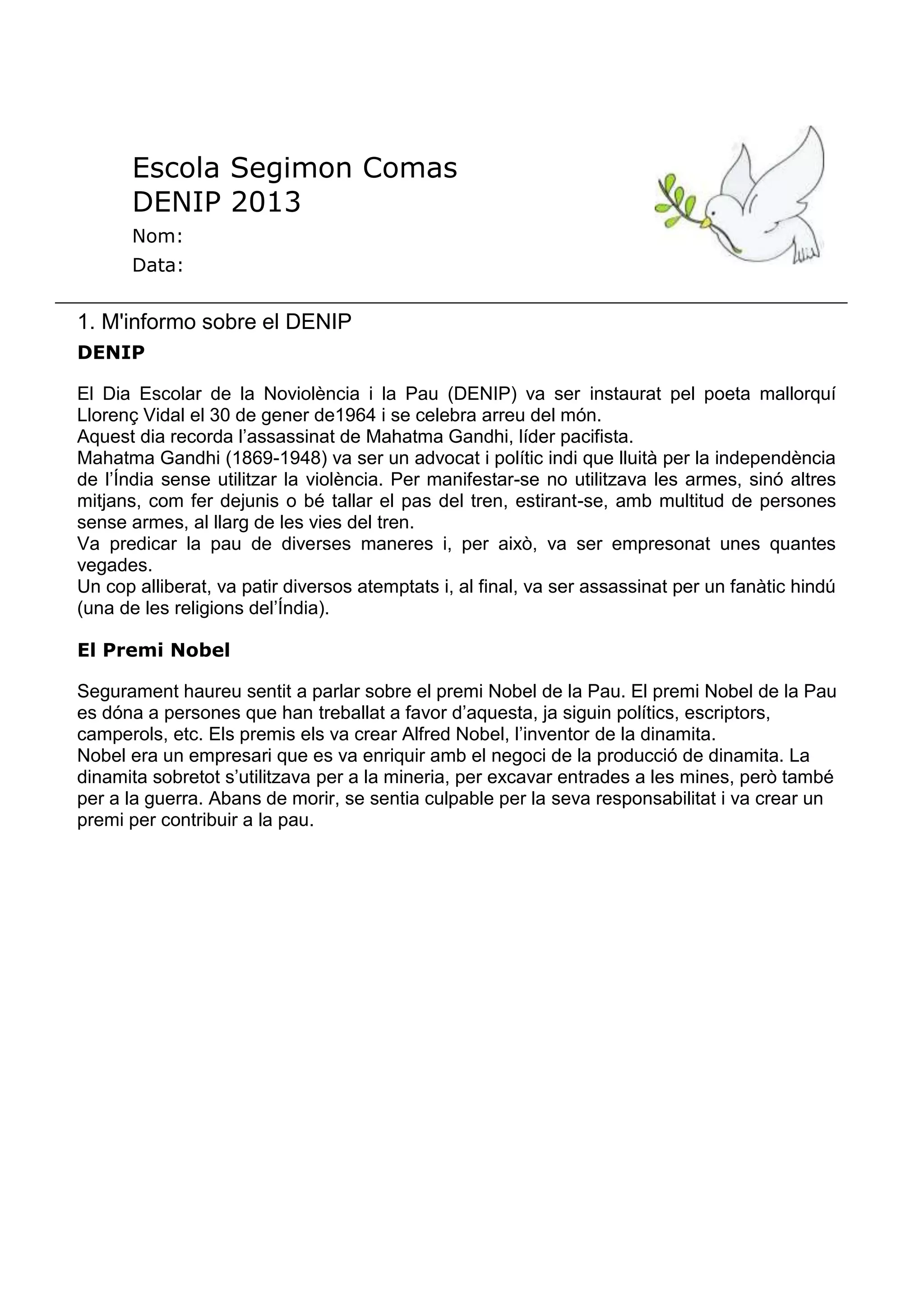 El Dia Escolar de la Noviolència i la Pau (DENIP) va ser instaurat pel poeta mallorquí
