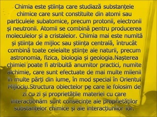 Proiectul realizat de Pirau Denis analizează avantajele chimiei în viața cotidiană și soluțiile pe care le oferă pentru problemele de mediu. Concluzia subliniază importanța chimiei în îmbunătățirea condițiilor de viață și protejarea mediului. Proiectul evidențiază rolul esențial al chimiei în diverse aspecte ale vieții de zi cu zi.