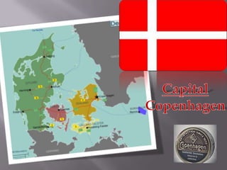 The document summarizes key information about Denmark in 3 paragraphs or less. It discusses Denmark's government which was established in 1849 and limits the monarch's power, having a bicameral legislature and 3 branches of government. It also notes Denmark's $332.6 billion GDP and 7% unemployment rate, and that it is open to international trade and exports oil. Finally, it highlights Denmark's cuisine which features lots of seafood due to its water surrounding location, and notes Copenhagen as the most populated city and Aarhus as a tourism destination with historical buildings.