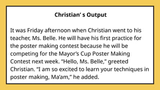 “Hi, Christian,” repliedMs. Belle. “Are you ready to
